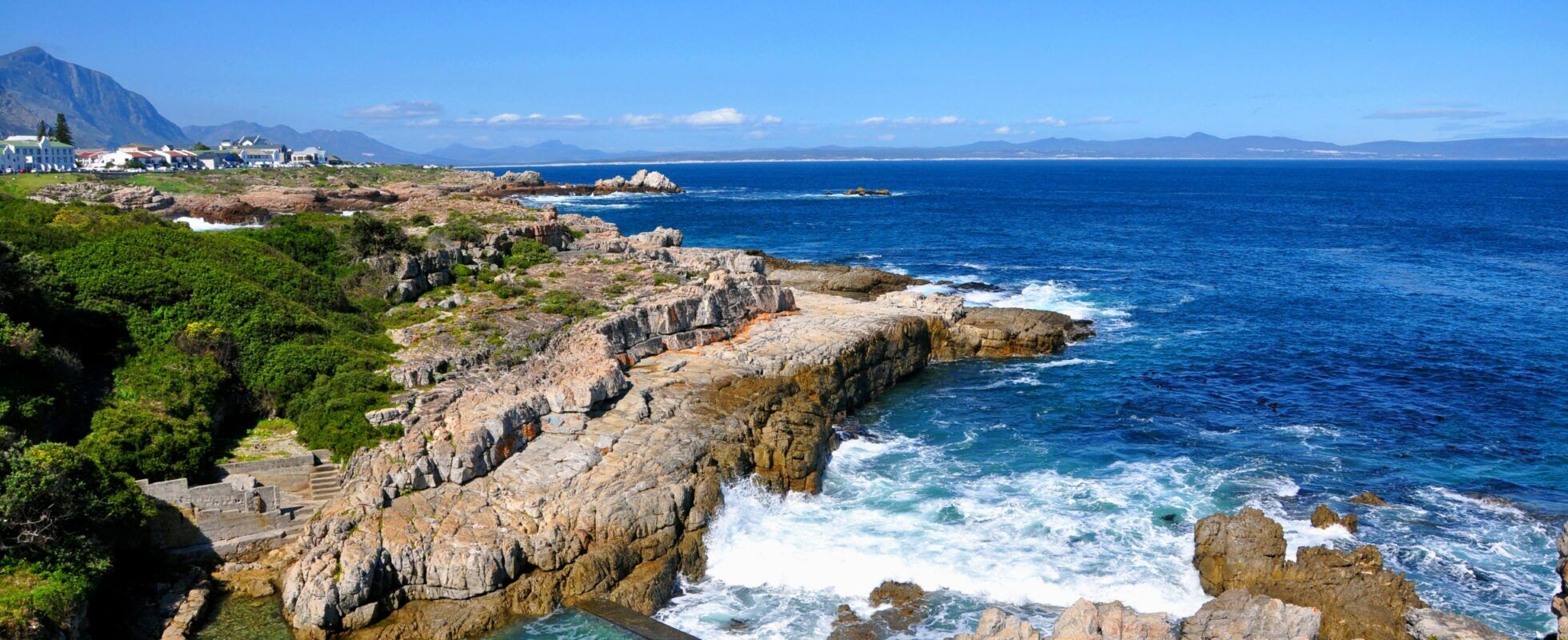Holen Sie alles aus Ihrem Tag in Gansbaai heraus, bevor Sie ins nahegelegene Hermanus fahren. Über die R43 sind es nur 40 Kilometer (30 Autominuten) nach Hermanus – Sie können als ganz entspannt Ihre Must-see-Liste in Gansbaai abhaken, bevor es zu Ihrer nächsten Unterkunft in der Walhauptstadt geht. Machen Sie eine Fatbike-Tour durch die Dünen oder eine Bootssafari in Walker Bay, bei der Sie die Big Five der Meere und noch viele weitere Tiere wie Pinguine, Delfine, Robben, Wale und unzählige Wasservögel beobachten können – wenn Sie zur Walsaison kommen, können Sie in den zwei Stunden auf dem Boot all diese Tiere auf einmal erspähen.