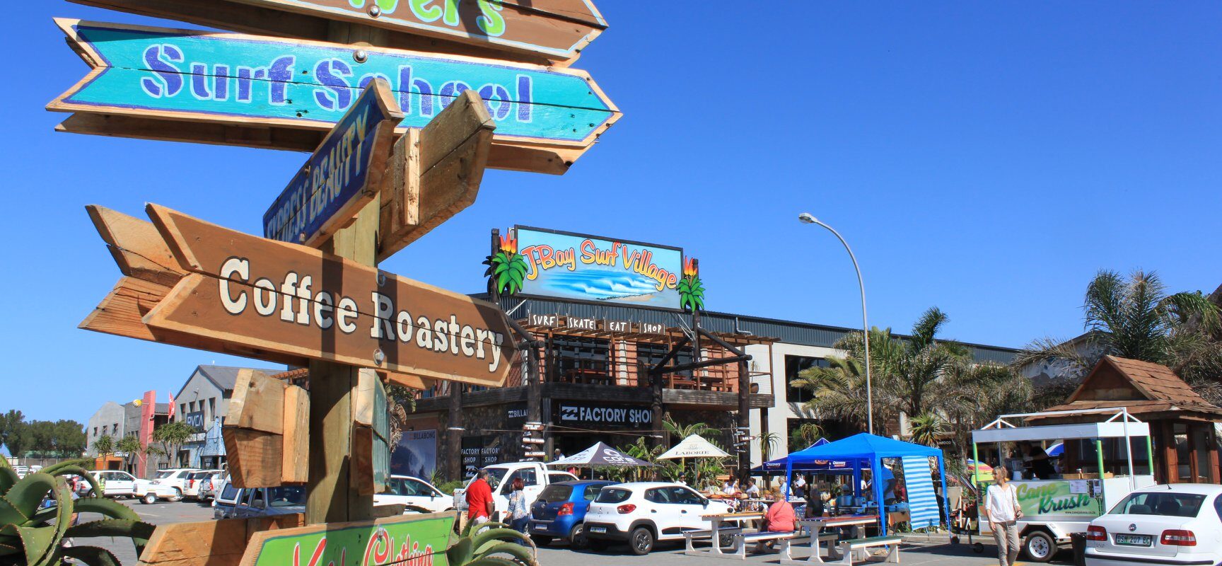 Das Surf Village in Jeffreys Bay ist eine Open-Air-Shoppingwelt mit einer wunderbar entspannten Atmosphäre und seit den 1980er-Jahren ein beliebter Hotspot mit der legendären Surf- und Skatekultur von J-Bay. Nur einen kurzen Spaziergang vom Dolphin Beach entfernt, finden Sie hier Surf-Shops, Billabong-Schnäppchen, Wohnaccessoires und Factory-Outlets. In den gemütlichen Restaurants können Sie ein kühles Craft-Bier genießen und mit der ganzen Familie entspannt zu Mittag essen. Das Surf Village ist ein absolutes Muss für alle, die entspanntes Shopping-Feeling mit Meerblick lieben!