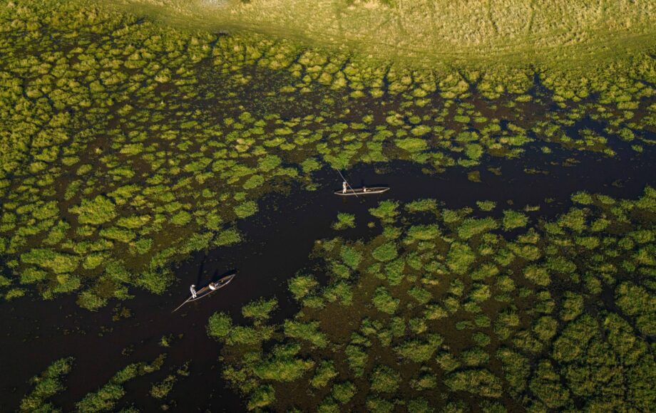 Das Okanvango Delta ist nicht ohne Grund weltberühmt. Mit bis zu 15.000 km² trotzt es der Trockenzeit und verwandelt sich stattdessen in ein grünes Paradies. Die zahlreichen Wasserwege sind eine willkommene Quelle für 160 Säugetiere und 530 Vogelarten.