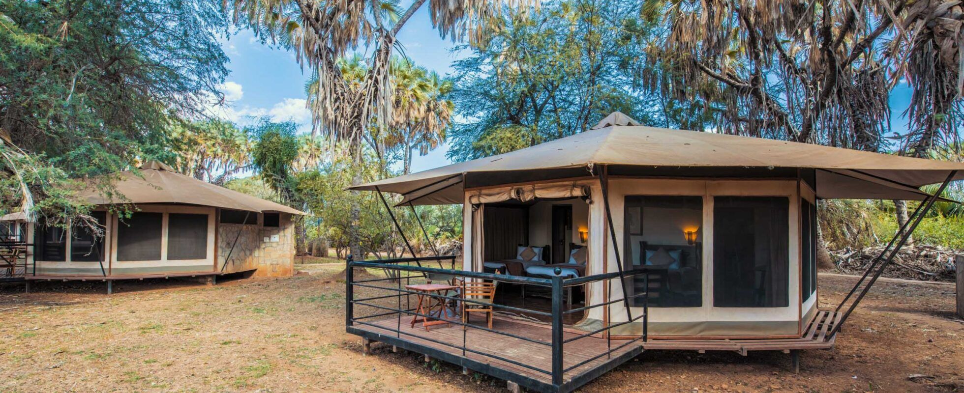 Mit 19 rundlichen Luxus-Safarizelten am Ufer des Ewaso Nyiro-Flusses garantiert das Ashnil Samburu Camp eine unvergessliche Nacht unter afrikanischen Sternen. Genießen Sie den Luxus und die relative Kühle im Schatten der Zelte und ihrer Terrassen, sonnen Sie sich am Pool auf den Sonnenliegen oder entspannen Sie an der Lounge-Bar. Das Restaurant bietet verschiedene internationale und Swahili-Gerichte, die Sie auch im Freien bei einem romantischen Buschdinner genießen können.