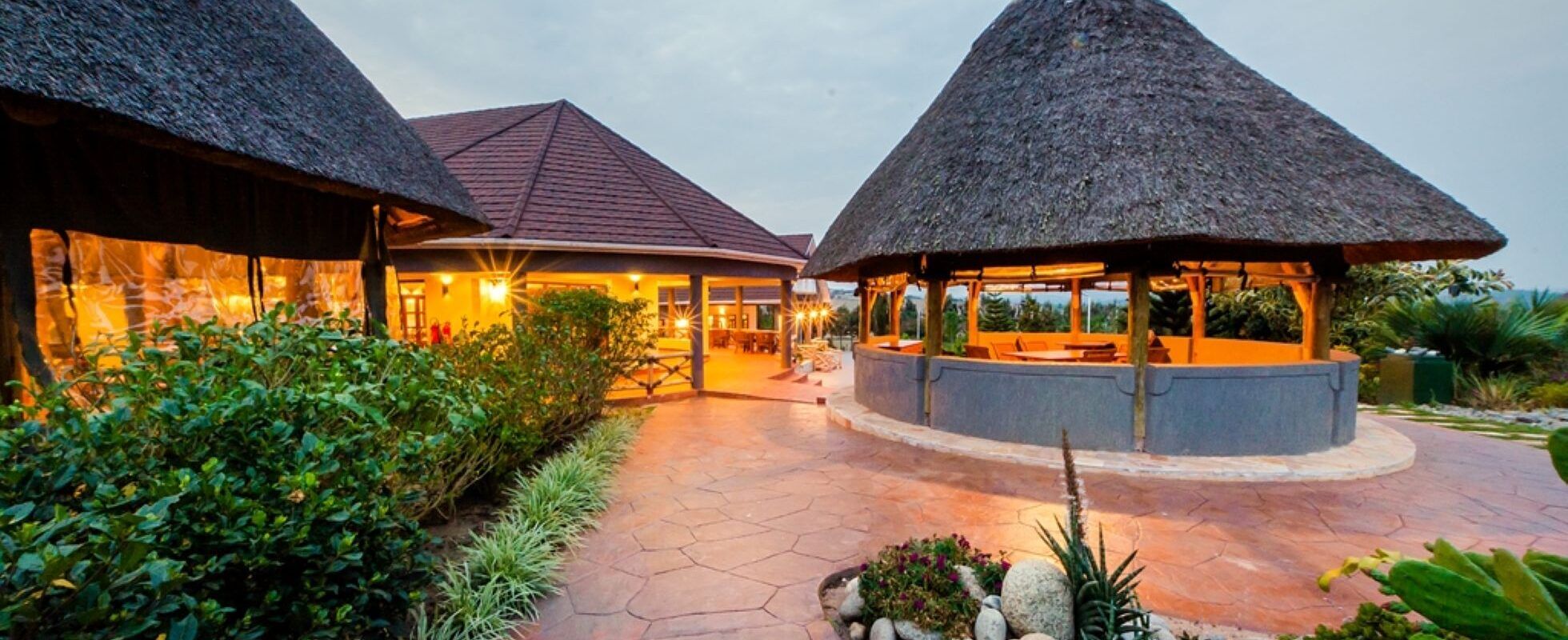 Die Emburara Farm Lodge ist eine luxuriöse Öko-Lodge in Mbarara, im Südwesten Ugandas und nur 2 Kilometer vom Nyakyisharara Airstrip entfernt. Die Lodge befindet sich auf einer 100 Hektar großen Farm und ist die Heimat wunderschöner Ankole-Langhornrinder. Die 27 geräumigen Zimmer sind elegant mit afrikanischen Mahagonimöbeln und edlen Stoffen eingerichtet und bieten Ihnen den Komfort einer Luxuslodge, während Sie das Landleben auf dem Bauernhof kennenlernen. Alle Zimmer verfügen über ein Kingsize-Bett, ein eigenes Bad und eine private Terrasse mit Blick auf die Farm und ihre Umgebung. Vor Ort gibt es eine Bar (perfekt für einen Sundowner!) und ein Restaurant, das sorgfältig ausgewählte lokale und internationale Köstlichkeiten serviert. Entspannen Sie sich am Pool oder gönnen Sie sich eine wohltuende Behandlung im Emburara Spa.