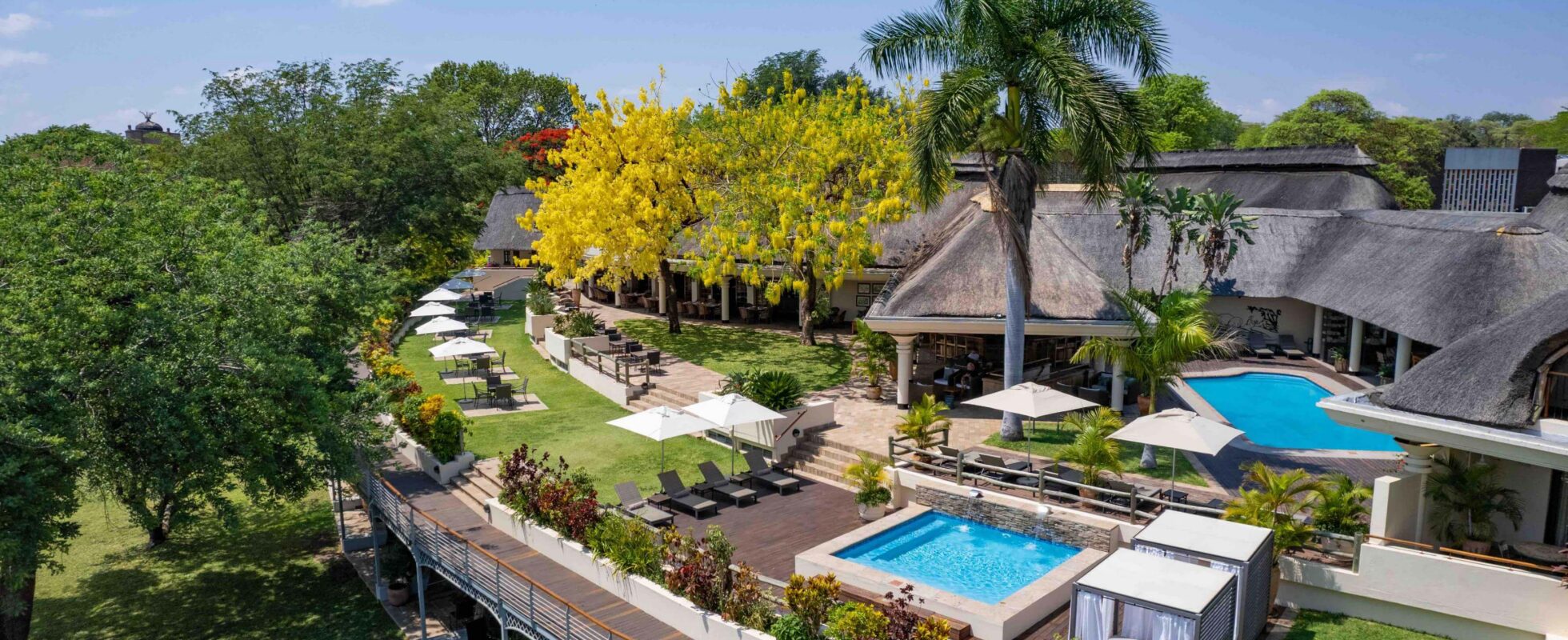 Nur acht Minuten zu Fuß entfernt, hören Sie die Victoriafälle schon, bevor Sie sie sehen. Das Ilala Lodge Hotel liegt auf der simbabwischen Seite der Fälle und verfügt über 73 Zimmer und Suiten, alle mit eigenem Bad, Klimaanlage und Satellitenfernsehen. Es ist eingebettet in grüne Gärten, durch die oft Warzenschweine und Impalas streifen. Ein Swimmingpool sorgt für eine erfrischende Pause zwischen den Ausflügen, während das Restaurant hier Frühstück, Mittag- und Abendessen serviert – immer begleitet vom entfernten Rauschen der Wasserfälle. Die Mahlzeiten werden drinnen oder unter freiem Himmel eingenommen, mit Blick auf die Gischt an klaren Tagen. Von hier aus sind die Geschäfte der Stadt und die Ausgehviertel zu Fuß erreichbar – Sie sind also quasi mitten drin im Geschehen!