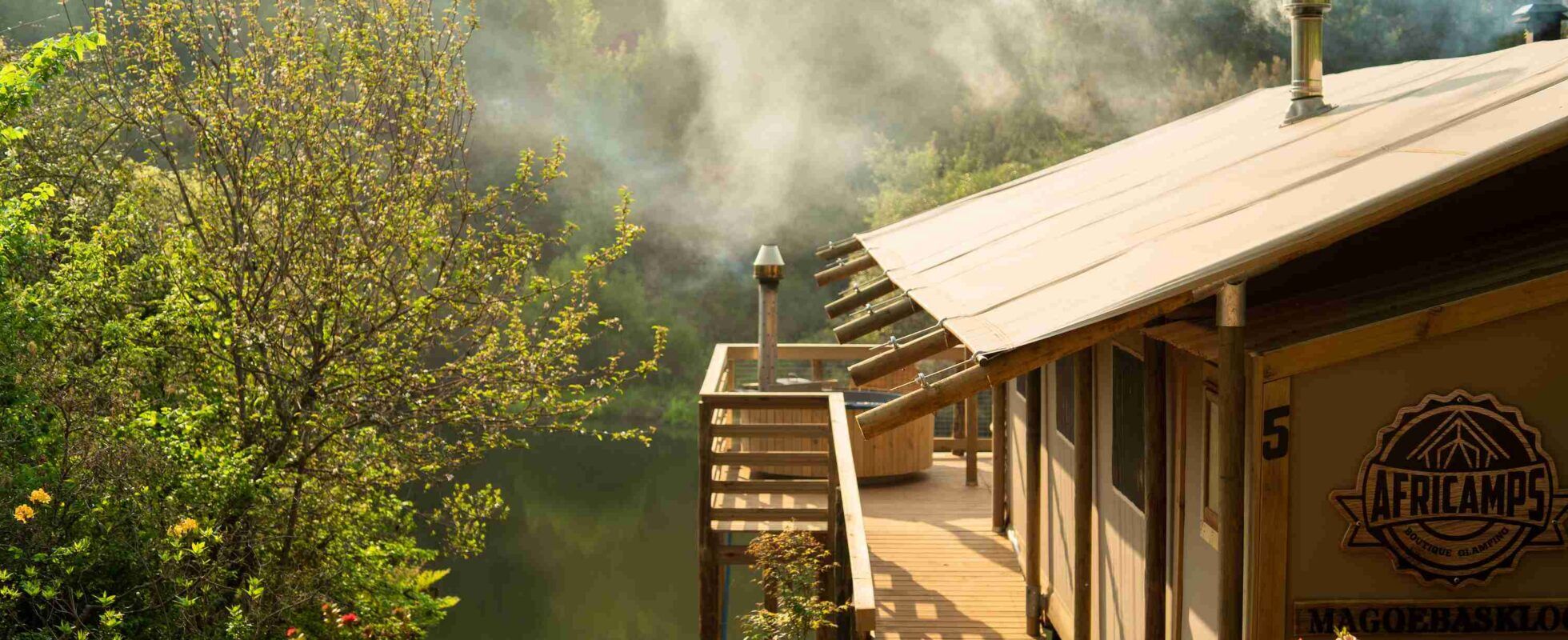 Das AfriCamps Magoebaskloof liegt nur sieben Kilometer außerhalb des malerischen Dorfes Haenertsburg, wo hügelige Graslandschaften, farbenfrohe Blumenwiesen und eine Architektur im Schweizer Bergstil Sie fast vergessen lassen, dass Sie sich in Limpopo befinden. Zehn Boutique-Glampingzelte bieten einen Blick auf das faszinierende Magoebaskloof und sind von üppigen Gärten, Bächen und Farmdämmen umgeben (die regelmäßig von ausgefallenen Vogelarten besucht werden!). Die Zelte verfügen über zwei Schlafzimmer (beide mit einem Queensize-Bett und einem zusätzlichen Etagenbett), einen Wohnbereich, einen Essbereich, ein Badezimmer mit Dusche, eine Küchenzeile, eine private Holzterrasse und einen eigenen holzbefeuerten Whirlpool. Es gibt sogar WLAN und Klimaanlage – wenn schon Camping, dann Glamping!