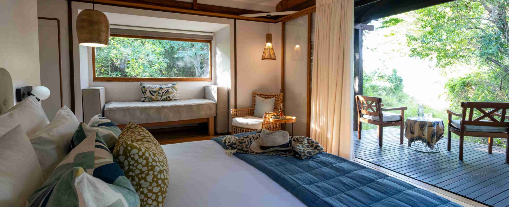 Die Makakatana Bay Lodge ist die einzige Lodge in Privatbesitz im iSimangaliso Wetland Park. iSimangaliso bedeutet „Wunder und Staunen“ in isiZulu – und genau das können Sie hier auch. Denn der Feuchtgebietspark am Indischen Ozean ist ein UNESCO-Weltnaturerbe und ist für seine unvergleichliche Artenvielfalt und die große Anzahl an Wildtieren bekannt. An den Ufern des Lake St. Lucia gelegen, bietet diese zu 100 % solarbetriebene Luxuslodge 8 elegante Zimmer (einige davon sind für Familien mit Kindern geeignet!), die allen modernen Komfort mit dem natürlichen Charme des Feuchtgebiets verbinden. Alle Zimmer verfügen über ein eigenes Bad mit Innen- und Außendusche sowie einer Badewanne, eine private Terrasse mit Daybeds und atemberaubender Aussicht und eine gut gefüllte Minibar. Entspannen Sie sich am Pool und genießen Sie einen Cocktail an der Bar. Und egal, ob Sie im Restaurant, auf der Aussichtsplattform oder am Feuer in der traditionellen Boma speisen, Makakatana ist ein unvergessliches Erlebnis!