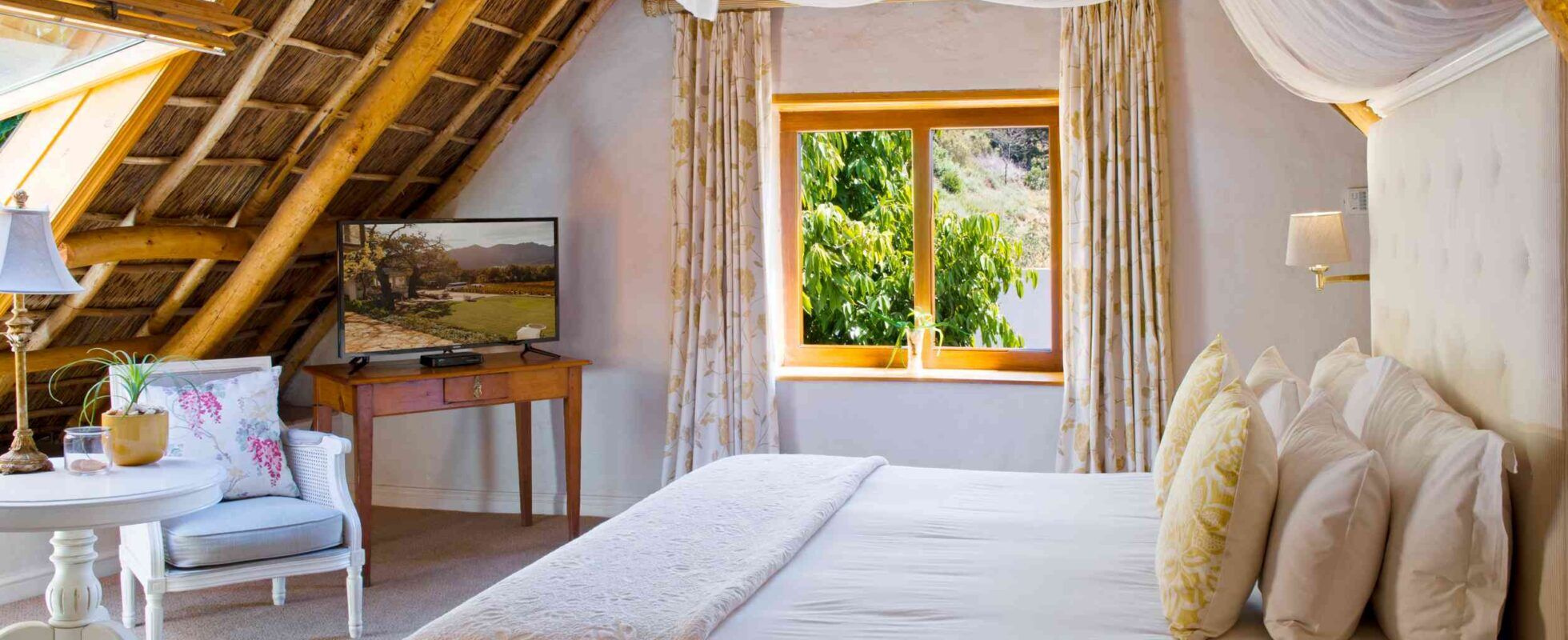 Eingebettet zwischen den malerischen Weinbergen von Franschhoek und den Dassenberg Mountains bietet das Rickety Bridge Manor House einen bezaubernden Rückzugsort mit einem glitzernden Swimmingpool und einem atemberaubenden Blick auf die umliegende Landschaft. Das historische kapholländische Herrenhaus, dessen Geschichte bis ins Jahr 1797 zurückreicht, beherbergt seit fast zwei Jahrhunderten Besucher. Es gibt 3 Doppelsuiten im Haupthaus und weitere 10 im angrenzenden Anwesen, alle ausgestattet mit eigenem Bad mit Dusche und modernen Annehmlichkeiten wie kostenlosem WLAN, einer Minibar, Kabel-/Satellitenfernsehen, Klimaanlage, Fußbodenheizung, Bademänteln und beheizten Handtuchhaltern. Beginnen Sie Ihren Tag mit einem reichhaltigen Frühstück, genießen Sie dann eine Weinprobe und anschließend köstliche Bistrogerichte in Paulinas Restaurant.