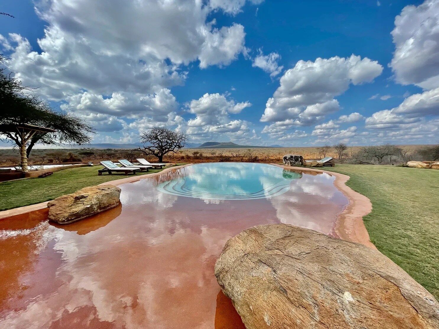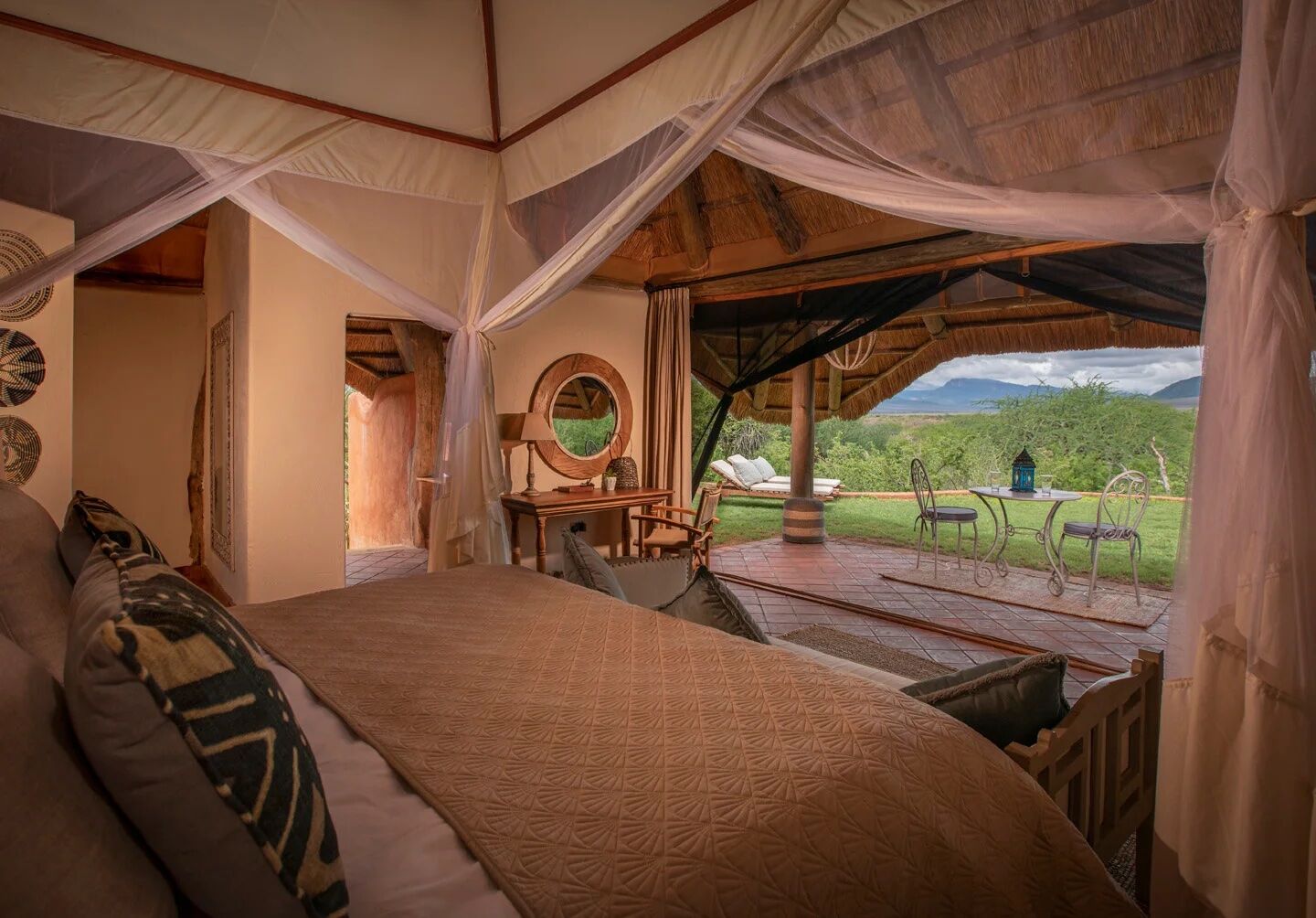 Die Zimmer sind eine Mischung aus mediterraner Eleganz und Swahili-Inspiration und verfügen über ein eigenes Bad mit viel Tageslicht und eine private Veranda. Die Familieneinheiten haben einen offenen Wohnbereich, während die Honeymoon-Suite mit einer großen Badewanne mit Blick auf die Taita Hills und einem privaten Garten ausgestattet ist. Für ein wahrhaftig intensives Erlebnis bietet die Lodge sogenannte Star Beds, in denen Sie in der Nähe eines Wasserlochs unter dem weiten afrikanischen Himmel schlafen können. Das Wasserloch ist ein saisonaler Zufluchtsort für Wildtiere, darunter große Elefantenherden. Die frühen Abendstunden bieten die perfekte Gelegenheit, um diese majestätischen Tiere in ihrem ruhigen Lebensraum zu beobachten.