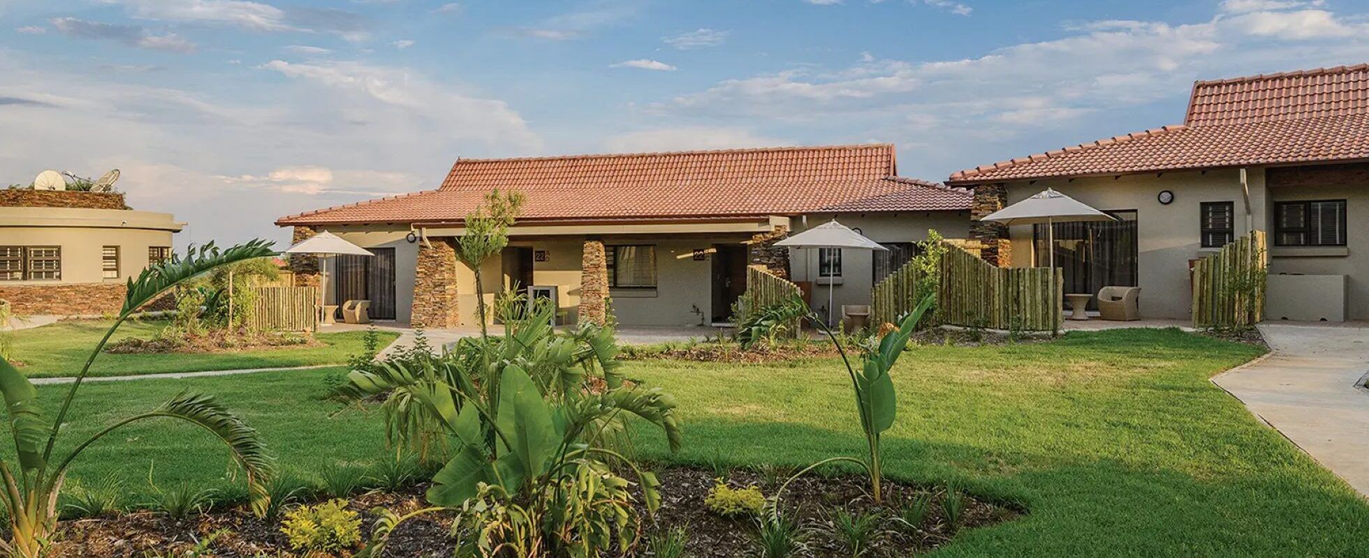 Das Kingdom Resort liegt nur wenige Minuten vom Eingangsgate des Pilanesberg Nationalparks entfernt und ist damit ein idealer Ausgangsort für Ihre Ausflüge in die Wildnis. Die Unterkünfte reichen von kleineren Studios bis hin zu geräumigen Villen mit vier Schlafzimmern (mit privaten Pools!), die auf Flexibilität und Komfort ausgelegt sind. Alle Zimmer verfügen über Klimaanlage, ein eigenes Bad und Annehmlichkeiten wie Minibar und Tee- und Kaffeestationen. Sie können im gemütlichen Acacia Terrace Café speisen oder sich im großen zentralen Swimmingpool abkühlen. Und für Familien gibt es einen Wasserpark und einen Spielplatz.