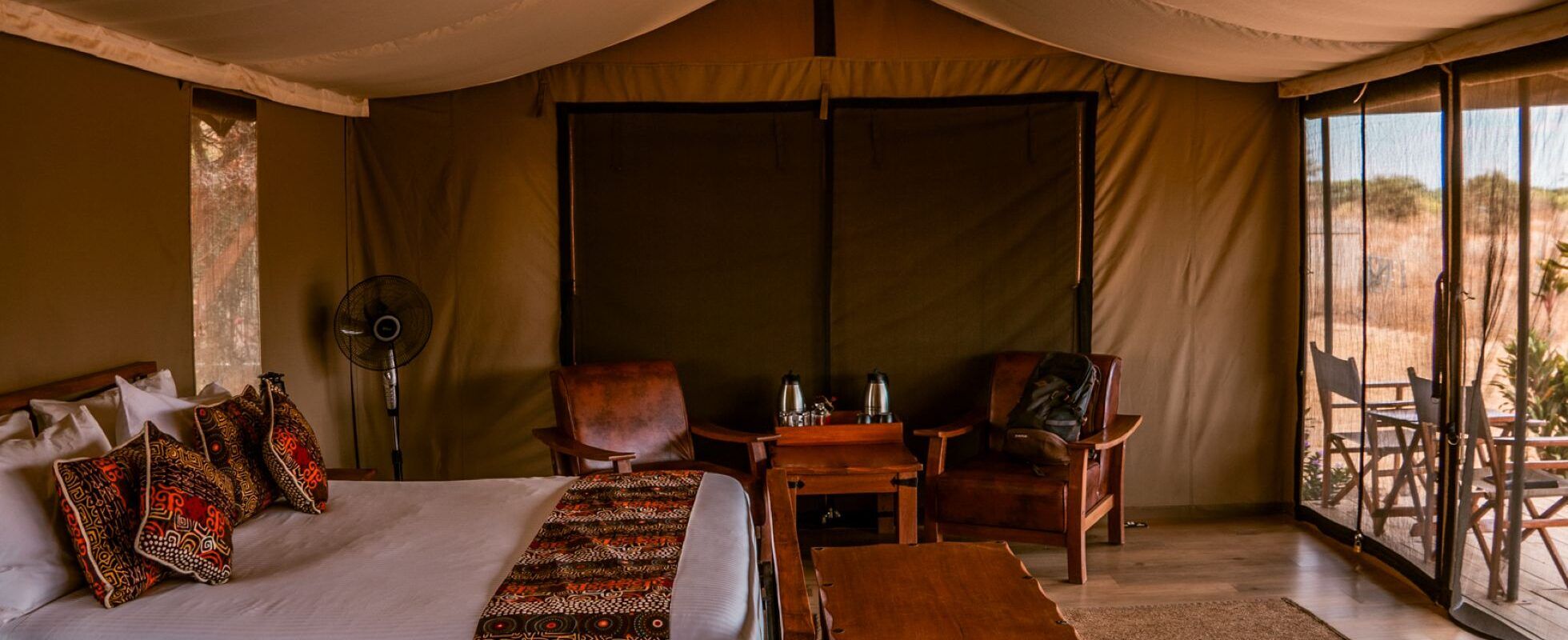 Das Tulia Amboseli Safari Camp bietet 20 luxuriöse Safarizelte, von denen 10 mit einem privaten Tauchbecken ausgestattet sind. Alle Zelte (einschließlich eines Familienzelts) sind wunderschön mit handgefertigten Möbeln aus der Region eingerichtet und verfügen über ein Doppelbett oder zwei Einzelbetten, ein Badezimmer mit Regendusche und eine Terrasse. Jedes Zelt öffnet sich zum Mount Kilimanjaro und bietet wunderbare Ausblicke auf Sonnenaufgang und Sonnenuntergang. Sie können den malerischen Blick auf den Kilimanjaro auch während Ihrer köstlichen Drei-Gänge-Mahlzeiten genießen. Die Speisekarte wechselt täglich und die Gerichte werden mit Obst und Gemüse aus der hauseigenen Shamba (Swahili für Gemüsegarten) und dem lokalen Markt zubereitet. Das Camp ist auch insofern umweltfreundlich, als es ausschließlich mit Solarstrom betrieben wird, über ein Abwassersystem verfügt, gefiltertes Trinkwasser anbietet und das frische Gemüse in einem umweltfreundlichen Holzkohlekühler kühlt.